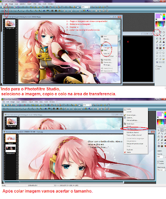 Agora vou para o segundo programa, o Photofiltre. Lá busco a primeira imagem e em seguida a segunda imagem que é da seleção de imagens que separei. Copio a segunda imagem e colo em cima da primeira para depois ajustar.